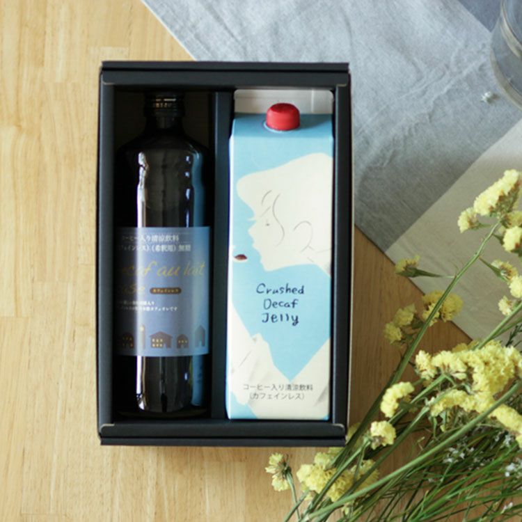 他の画像を見る 出産祝いや授乳中のママ友へのプレゼントに ホワイトデーにクラッシュド デカフェゼリーとデカフェオレベース【加糖】2本ギフトセット(l) 販売期間 2026/03/01 0:00 〜 2026/10/31 23:59 送料無料 ギフト包装無料 カフェインレス お急ぎ便 NEW 4.00 (1) 当店特別価格 ¥ 4,644 税込 詳細を見る お気に入りに登録する