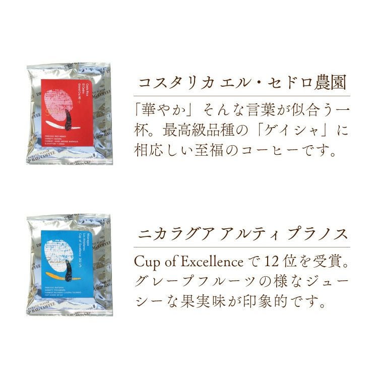 他の画像を見る 最高級グランクリュドリップだけを詰め込んだ、至高のギフトセット バレンタインに【数量限定】グランクリュドリップコーヒー3種30杯詰め合わせギフトCup of Excellence 2025 ニカラグア 12位Costa Rica El CedroColombia San Rafael Watermelon 浅煎り 送料無料 ギフト包装無料 グランクリュ お急ぎ便 (0) 当店特別価格 ¥ 12,960 税込 詳細を見る お気に入りに登録する